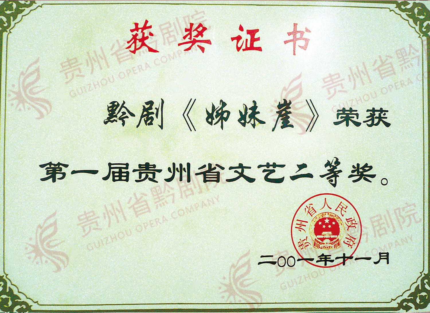 《貞女》,獲第二屆貴州省文藝獎三等獎 | 《姊妹崖》,獲第一屆貴州省文藝二等獎 |