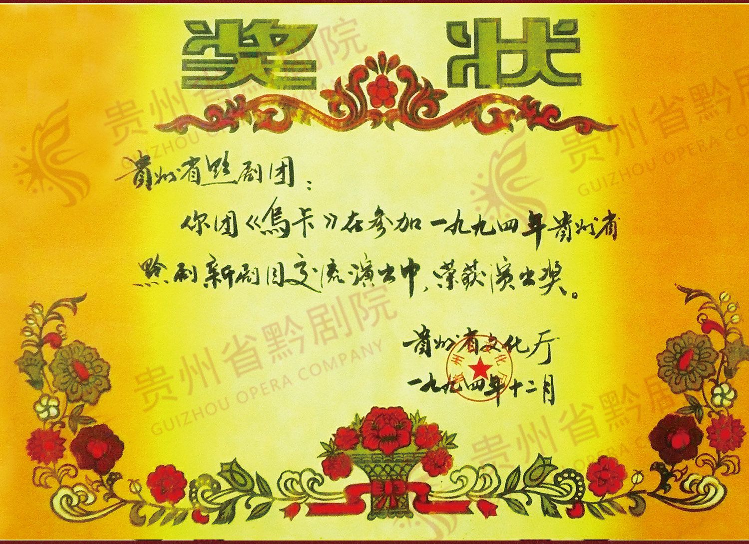 《烏卡》參加1994年貴州省黔劇新劇目交流演出中,獲演出獎 | 《中秋月》榮獲1983年全省戲劇創(chuàng)作演出獎 |