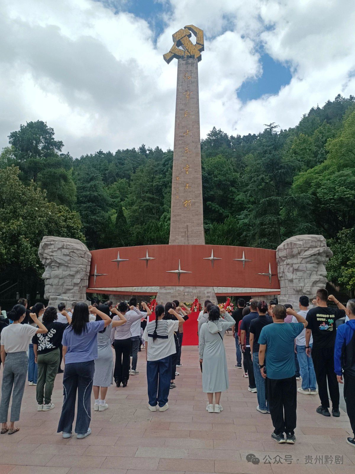 全體人員來到遵義紅軍山烈士陵園,革命烈士紀念碑巍然矗立,全體黨員干部懷著崇敬心情向烈士敬獻花籃,肅穆默哀,深切緬懷革命先烈。大家緩步繞行紀念碑,瞻仰紅軍英烈墻、紅軍墳,聆聽紅軍烈士的英雄事跡,感受他們用生命鑄就的忠誠與信仰。