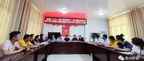 按照活動方案流程,午后省黔劇院、省文旅廳機關幼兒園、毛嶺村委黨員代表聯合開展了以“喜迎二十大·助力鄉村振興”為主題的黨日活動和座談。活動中全體黨員在駐村第一書記陶然的帶領下重溫入黨誓詞,朱宏院長領學了“新國發2號文件精神”,張亞西書記領學了省第十三次黨代會精神,會上重點圍繞增強黨支部政治功能、提升組織力,尤其是對如何切實發揮黨建引領作用,不斷加強黨支部的凝聚力和戰斗力,更好發揮黨員先鋒模范作用,推動毛嶺村鄉村振興工作同毛嶺村黨員干部展開學習交流討論。座談會上,朱宏院長表示,一定會發揮本院優勢,通過文藝小分隊下基層開展演出的形式,不斷繁榮豐富毛嶺村村民的精神文化生活,讓群眾深切感受到今天的幸福生活,進一步加強鄉村文化建設,助推鄉村振興工作。張亞西書記也重申,院村要加強合作和聯動,甄選好的鄉村振興項目,改進作風,強化落實,實實在在為毛嶺村的鄉村振興,貢獻自己應有的力量。