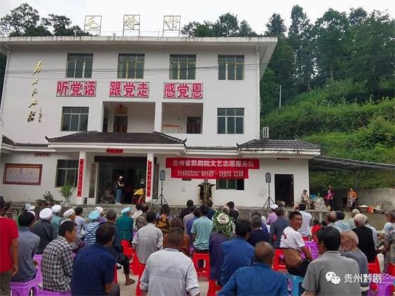 6月22日,省黔劇院、廳機關幼兒園一行32位黨員代表和演出人員來到我院鄉村振興點——德江縣桶井鄉毛嶺村,毛嶺村村民及村委人員早已在村委廣場上熱情的等候著,歡迎大家的到來。為了能豐富鄉村文化生活,及時給村民們獻上精彩的文藝演出,省黔劇院文藝志愿服務隊立即搭建臨時舞臺,給基層的村民們送上了一出精彩的演出,演出有歌唱、小品、相聲、黔劇唱段、變臉、魔術、雜技等,精彩的演出贏得了在場村民的陣陣掌聲和叫好聲,隨著音樂聲在山間響起,廣場上、路邊、山上,不一會就匯聚了一批村民們駐足觀看,他們質樸的臉上流露出開心無比的笑容,一位當地的村干部在觀看演出時說到,村民們很少能看到這種精彩的現場演出,因此都很渴望,也很期待,希望我們能經常來演出。