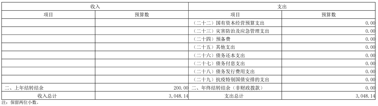 2025年單位收入預算總額3,048.14萬元,其中:本年收入 2,848.14萬元,上年結轉結余200.00萬元。本年收入中:財政撥 款收入2,648.14萬元,財政專戶管理資金收入0.00萬元,單位資 金收入200.00萬元,存量資金收入0.00萬元。