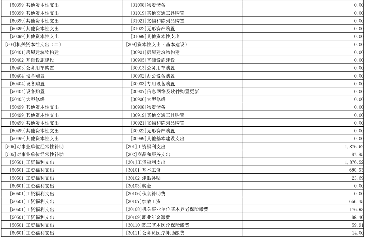 2025年單位基本支出預算總額為2,116.14萬元,其中:人員 經費1,988.29萬元,公用經費127.85萬元。人員經費包含基本工 資680.53萬元、津貼補貼23.69萬元、績效工資656.45萬元、機關 事業單位基本養老保險繳費176.93萬元、職業年金繳費88.46萬 元、職工基本醫療保險繳費19.91萬元、公務員醫療補助繳費 14.00萬元、其他社會保障繳費13.27萬元、住房公積金163.28萬 元、離休費24.63萬元、退休費127.14萬元;公用經費包含職工基 本醫療保險繳費40.00萬元、辦公費35.02萬元、差旅費5.00萬 元、租賃費0.79萬元、委托業務費20.00萬元、工會經費26.69萬 元、其他商品和服務支出0.35萬元。