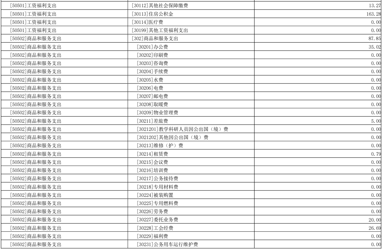 13.公用經費:主要是指部門和單位“商品和服務支出”和 “資本性支出”中屬于基本支出內容的支出, 包括辦公費、水 費、電費、郵電費、物業管理費、交通費、差旅費、日常維修 (護)費、會議費、租賃費、招待費、培訓費、福利費、工會經 費、辦公設備購置、其他商品和服務支出等。