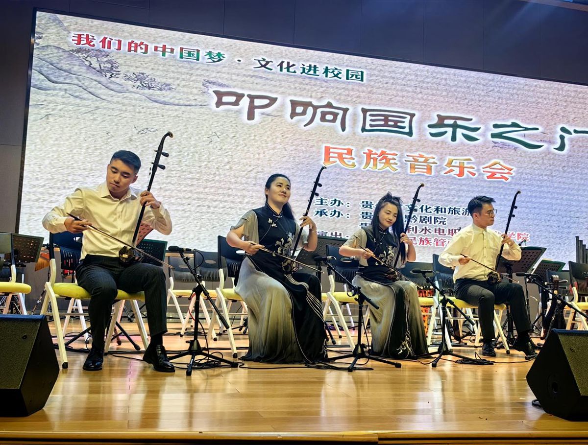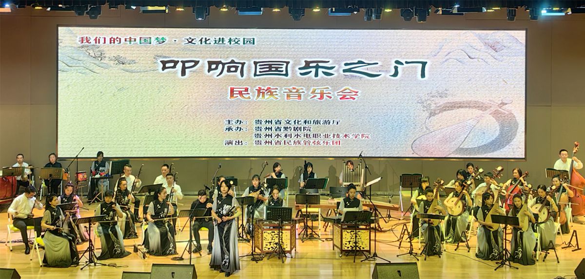 10月25日,貴州省黔劇院、貴州省民族管弦樂團“叩響國樂之門”專場民族音樂會在貴州水利水電技術學院文淵館上演。