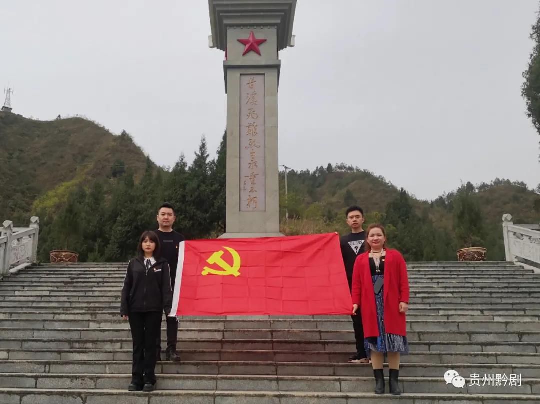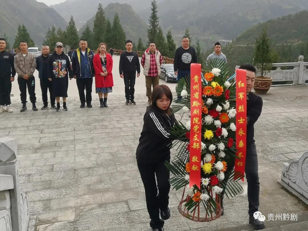 活動中貴州省黔劇院黨支部第二黨小組組長、演員隊隊長邰江平,黨員黃蕾,楊姝姝及入黨積極分子劉薩等,帶領演出小分隊成員代表貴州省黔劇院全體職工向烈士紀念碑獻上花籃,并在現場重溫入黨誓詞,向英雄致敬!