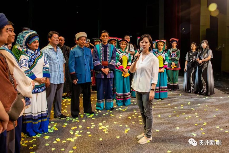 鄭欣副廳長指出,黔劇是貴州獨有的戲曲文化,是國家級非物質文化遺產,有著廣闊的發展空間,在文化強國、文化強省的大背景下,我們肩負著傳承好、發展好黔劇事業的光榮使命。同時她強調,省黔劇院要凝神聚力,加強調研,在保護傳承好黔劇的同時,要為之努力奮斗,將黔劇文化發揚光大,不辜負所有為黔劇事業做出過貢獻的同志們。