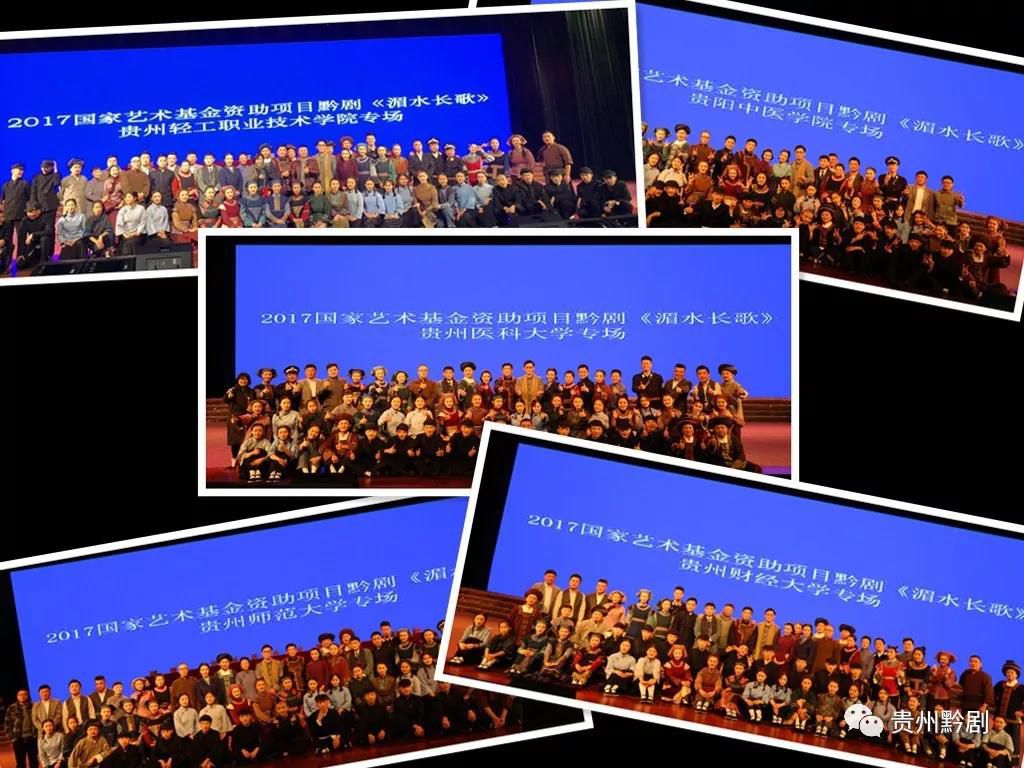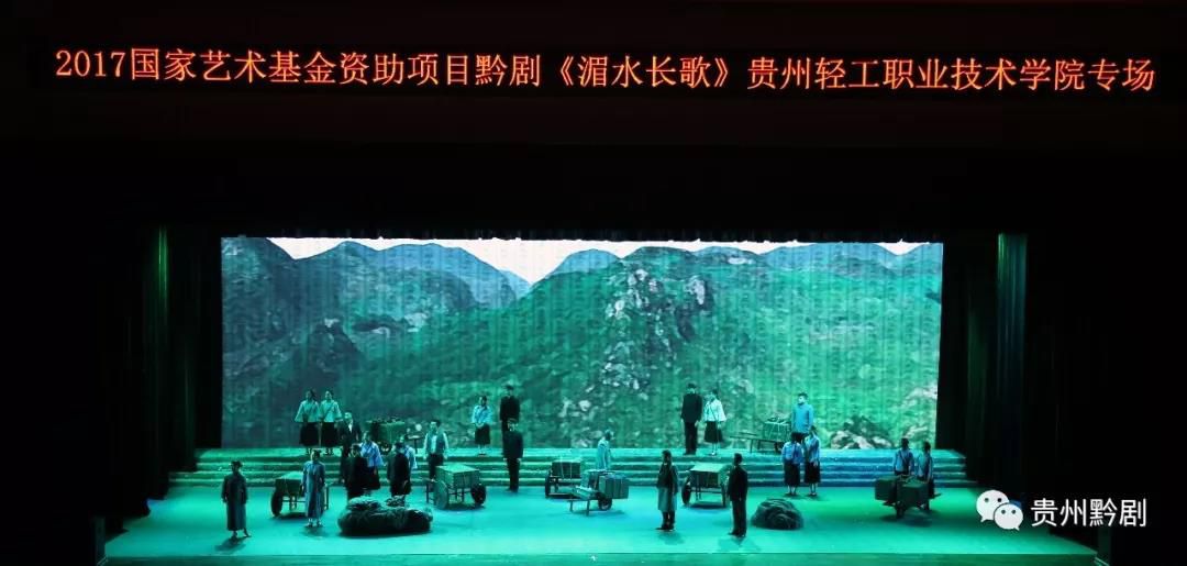 2017年度國家藝術(shù)基金項目大型黔劇《湄水長歌》走進(jìn)大學(xué)城巡演,11月18日——24日每天演出2場,共計演出14場,分別為貴州輕工職業(yè)技術(shù)學(xué)院、貴陽中醫(yī)學(xué)院、貴州醫(yī)科大學(xué)、貴州師范大學(xué)、貴州財經(jīng)大學(xué)5所高校進(jìn)行專場演出,涉及大學(xué)生觀眾上萬人次,場場爆滿,座無虛席。首場演出于18日貴州輕工職業(yè)技術(shù)學(xué)院專場演出中拉開帷幕。
