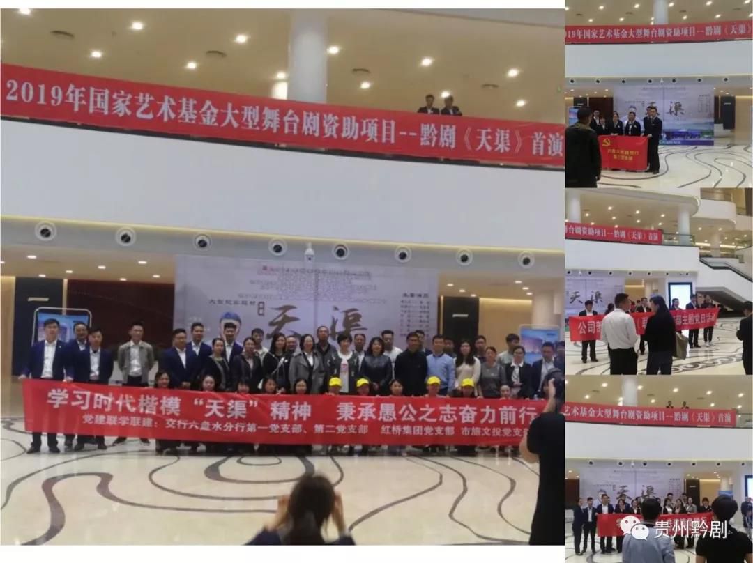 黔劇《天渠》是以中宣部授予“時代楷模”榮譽(yù)稱號的全國道德模范黃大發(fā)為原型而創(chuàng)作的大型現(xiàn)實(shí)題材劇目,該劇成功塑造了黃大發(fā)先進(jìn)人物形象,反映了我省以黃大發(fā)為代表的新時代共產(chǎn)黨員不忘初心、牢記使命、決戰(zhàn)脫貧攻堅(jiān)的感人故事,彰顯了新時代的貴州精神。首演當(dāng)天得到了當(dāng)?shù)攸h委、政府、社會各界和媒體的廣泛關(guān)注,并且很多單位的黨支部借《天渠》首演機(jī)會紛紛組織黨員干部前來觀看學(xué)習(xí),開展主題黨日活動。