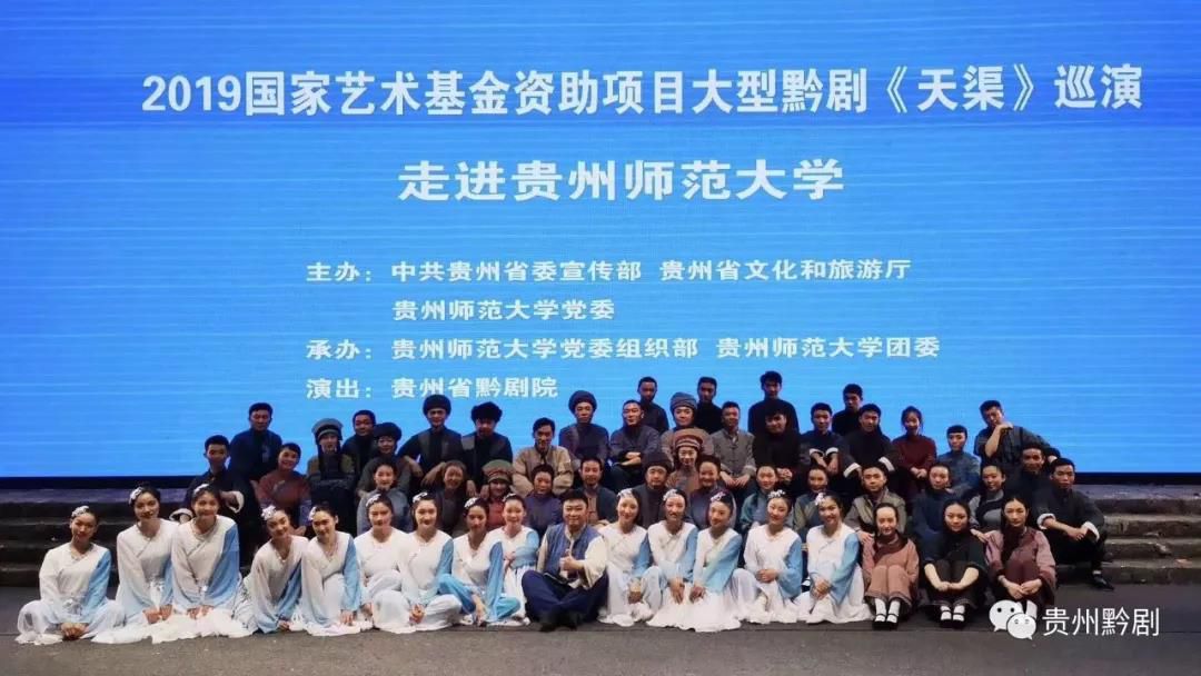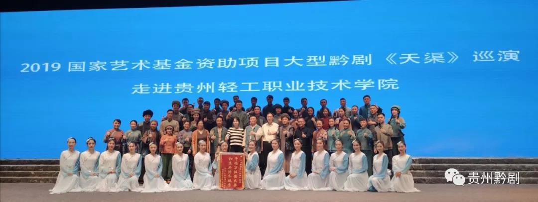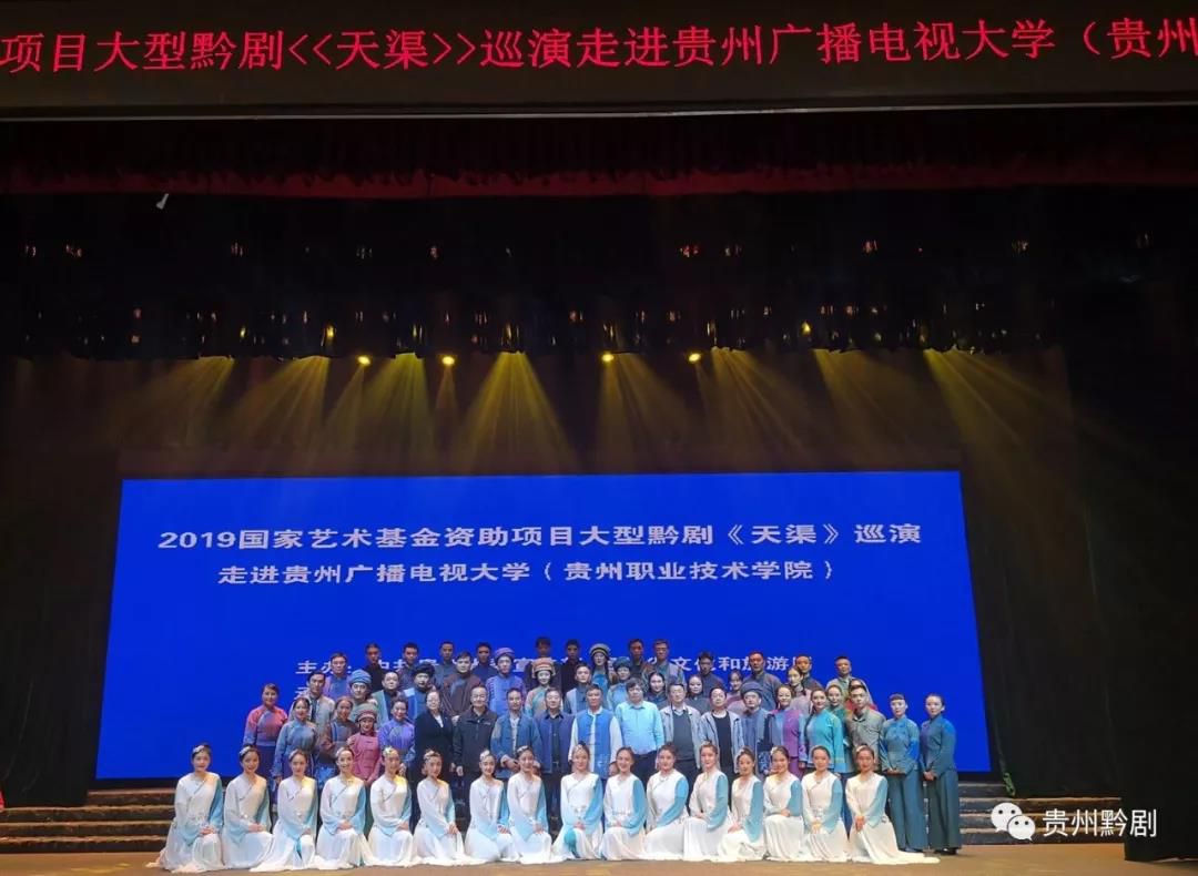 黔劇《天渠》以“時代楷模”、全國道德模范黃大發同志為原型,反映我省以黃大發同志為代表的新時代共產黨人“不忘初心 牢記使命”帶領鄉親們決戰決勝脫貧攻堅,實現同步小康的感人故事。省黔劇院的優秀文藝工作者們攜帶著這一有光芒、有溫度、有筋骨的感人故事,滿懷著人民情懷,正不斷的向社會傳播真善美的正能量,向群眾和大學生們宣揚著新時代的貴州精神。該劇先后到六盤水、貴州中醫藥大學、貴州廣播電視大學、貴州師范大學、貴州輕工職業技術學院等地巡回演出,將這一精品力作帶到群眾和大學生身邊,讓他們近距離感受到了黔劇的魅力。