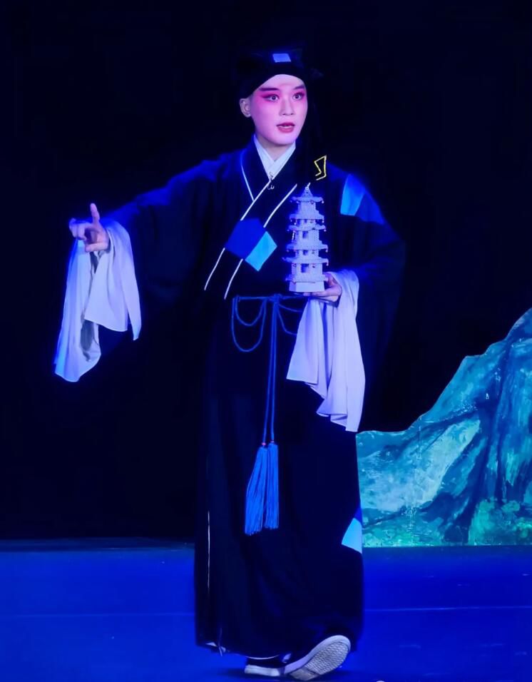 表演系2021級多劇種表演專業(yè)教學(xué)實(shí)踐基地(黔劇)期末匯報共分兩場,先后上演了控訴封建禮教的《團(tuán)圓之后》,講述少數(shù)民族凄美愛情故事的《秦娘美·約逃·宿洞》,以才子佳人愛情為主題的《珍珠塔·跌雪》,以優(yōu)秀共產(chǎn)黨員黃大發(fā)開鑿“生命渠”事跡改編的《天渠》,以貴州省工委第一任書記林青為創(chuàng)作原型改編的《無字豐碑》、以浙江大學(xué)西遷湄潭,教育救國故事改編的《湄水長歌》,以清朝時期興義府(今安龍縣)知府張锳(張之洞之父)為學(xué)子添燈油的歷史典故改編的《燭照春秋》等劇目,并要求每位學(xué)生完成兩個以上主要角色的演出,幫助學(xué)生夯實(shí)表演基礎(chǔ)、提升藝術(shù)水平,充分展現(xiàn)學(xué)習(xí)成果。同學(xué)們運(yùn)用"唱、念、做、打"表演技藝,將戲曲中的"聲、情、神、形、意"表達(dá)得淋漓盡致。