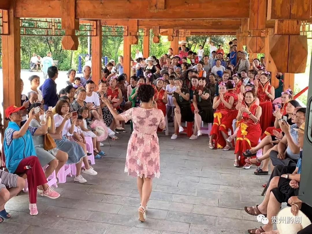 在演出活動中,各地方積極參與,與我院的演員們同臺激情演繹、放聲高歌,演出內(nèi)容豐富多彩,有黔劇《奢香夫人》選段、小品《扶貧款》、川劇《變臉》、相聲《城里人鄉(xiāng)下人》、歌伴舞、舞蹈、獨唱等,給觀眾展示了不同層次的文化底蘊,歌頌黨的好政策,反映人民群眾的新生活,展示新家園的新面貌,表達對美好生活的憧憬,為基層群眾獻上了一臺精彩紛呈的表演,贏得了現(xiàn)場觀眾的陣陣笑聲和掌聲。