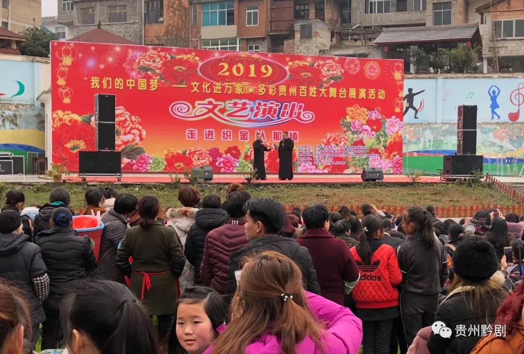 2019年1月20、21日,貴州省黔劇院“我們的中國夢”——文化進萬家·多彩貴州大舞臺展演活動慰問演出在貴州省織金縣文化廣場和以那鎮舉行,為廣大群眾和學生開展了四場豐富多彩的慰問演出,舞臺上演員們演得帶勁,舞臺下超過千名當地群眾把現場里外圍了好幾層,精彩的演繹贏得了臺下觀眾的陣陣掌聲。