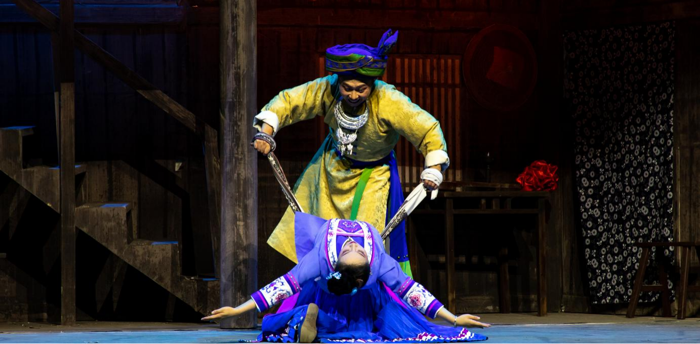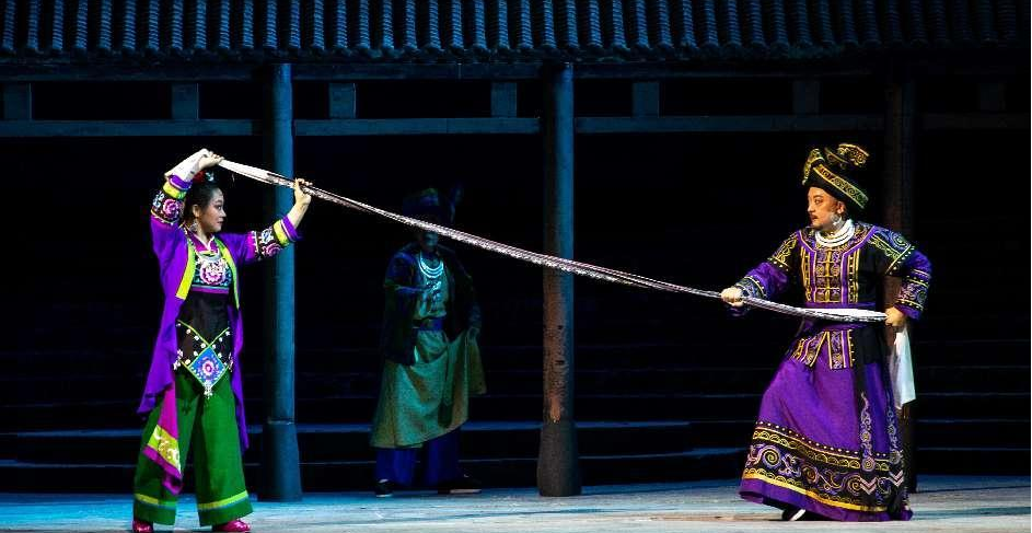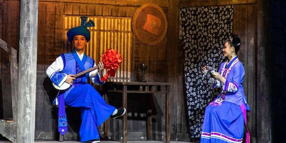 《秦娘美》作為貴州黔劇的代表作之一,講述了侗族民間故事中珠郎與娘美的愛情悲劇。劇中展現了侗族文化的獨特魅力和深厚的歷史底蘊。該劇目由新銳導演余鳳霞、陳濤執導,一級編劇余妍潔、楊儀均改編,并由一批年輕演員擔綱主演,旨在通過現代舞臺技術和創新的藝術手法,讓這部經典劇目煥發新的生命力。