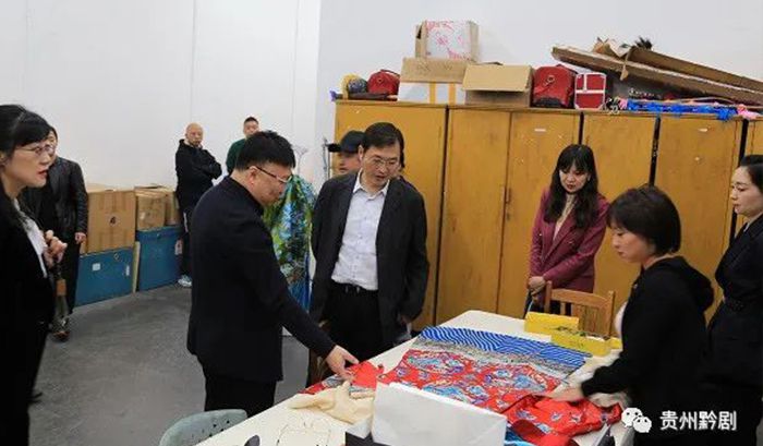 謝念在調研活動中,先后到省黔劇院舞美音像中心服裝室、樂團排練廳、演員排練廳實地考察,了解藝術生產中有關安全生產、排練、劇目創排、黔劇發展等工作,并與工作人員親切交流。