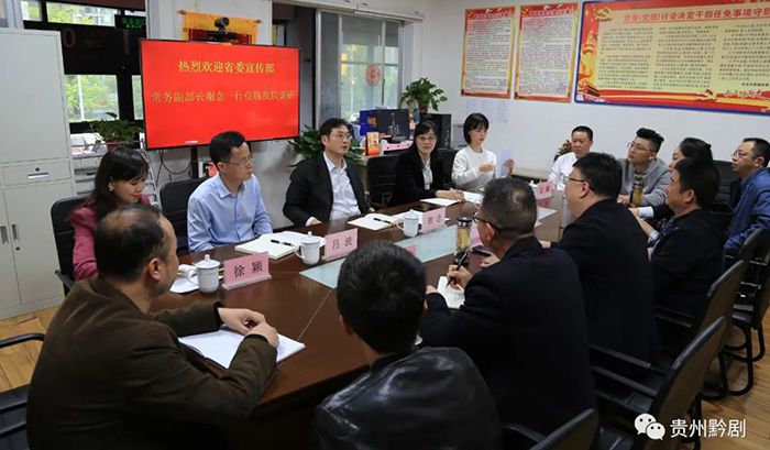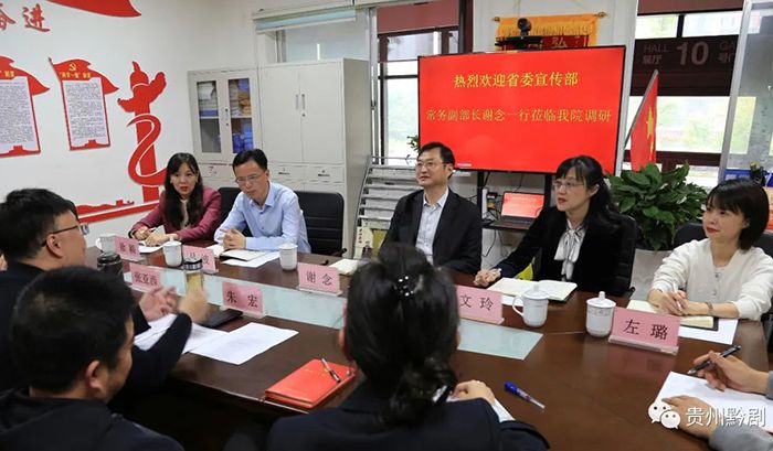5月24日下午3:00,省委宣傳部常務副部長謝念來到省黔劇院,深入藝術生產一線部門調研,并同省黔劇院干部職工交流座談。