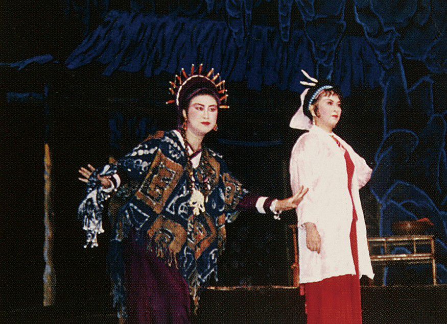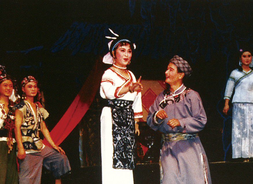 為紀念周恩來總理為黔劇題詞三十周年創作演出大型布依族題材黔劇。編劇:邵宏迢、黃湘。總導演:酈子柏。導演:蘇文才。作曲:楊方剛、李克禮、馬非天。舞美設計:歐陽勞汗。 主要演員:劉玉珍飾阿蔓,馬瑜生飾阿石,袁德興飾多巖,鄒秀鐘飾阿青,李詠梅飾阿柳,吳家林飾阿角,崔燕鵬飾迷拉婆。 1990年,該劇于由貴州省黔劇團首演,并獲貴州省文化廳頒發的“紀念獎”。