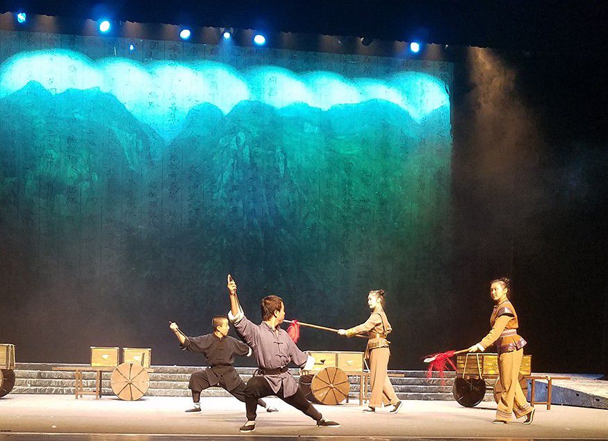大型原創黔劇《湄水長歌》由我省編劇石佳昱、彭玲共同創作,2016年8月立項,將于2018年9月7日于畢節大劇院進行正式首演。歷史上有紅軍二萬五千里長征,該劇講述的是“文軍西征”,教育救國?!朵厮L歌》講的就是浙江大學西遷湄潭的故事。