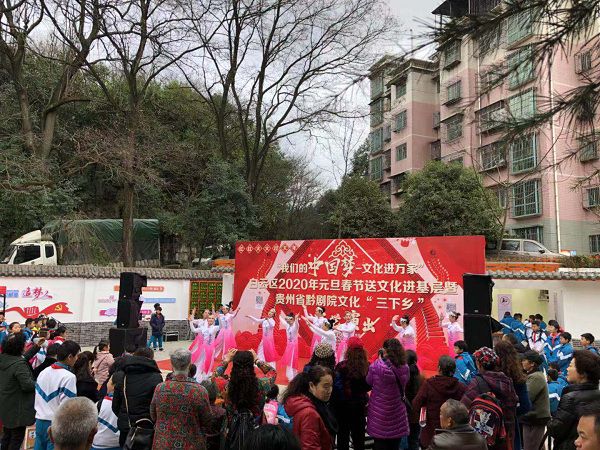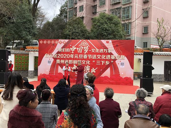 為深入宣傳貫徹黨的十九屆四中全會精神,充分發揮文化立時代之潮頭、發時代之先聲,為決戰脫貧攻堅全面建成小康社會鼓舞斗志、激揚精神的作用,為百姓提供健康積極的文化活動生活,貴州省黔劇院攜手白云區文體廣電旅游局、白云區文化館、白云區圖書館共同開展了2020年元旦春節“送文化進基層”文化活動。組織“文藝輕騎兵”、“文化志愿者”隊伍到白云區各鄉鎮、社區開展送春聯、廣場文藝演出及“墨跡書香伴您行”讀書活動。活動首場演出在白云紅云社區泰和花園進行,后續還將在11個鄉鎮逐步開展。鄉鎮逐步開展。鄉鎮逐步開展。