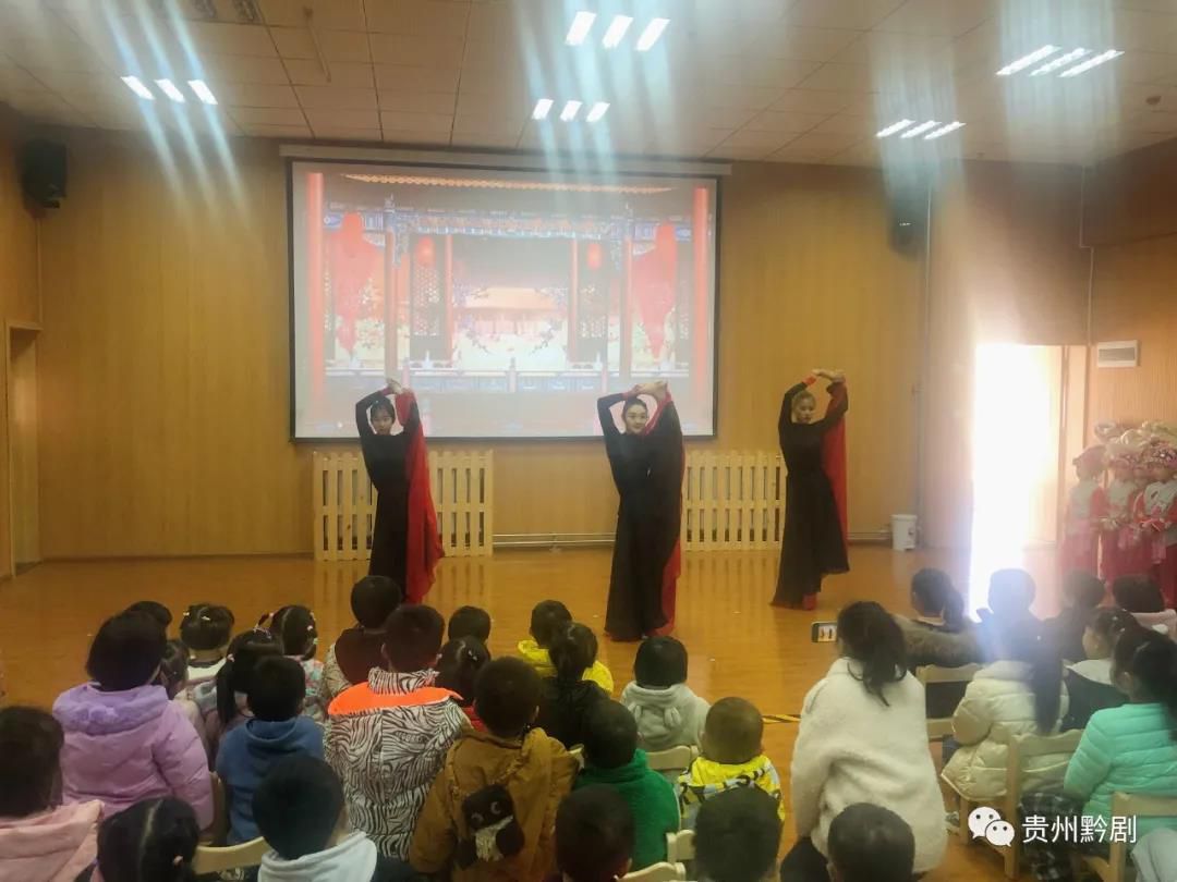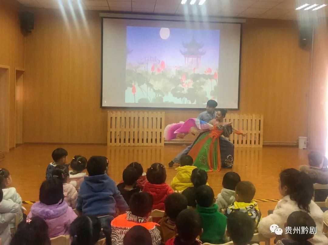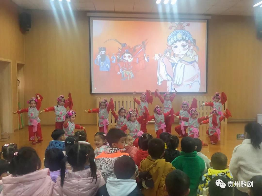 演出中,黔劇院青年演員們展示了黔劇基本功,一招一式道出了戲曲的靈魂;幼兒園學(xué)生表演的戲曲《賣水》生動(dòng)、靈巧;木偶表演《游園驚夢(mèng)》用小朋友喜歡的形式再現(xiàn)了戲曲的魅力;雙人舞《扇緣》將曼妙的舞姿和戲曲表演中常用的團(tuán)扇相融合,韻味十足。兒童舞蹈《小小芝麻官》、魔術(shù)表演等精彩節(jié)目紛紛上演,黔劇戲曲動(dòng)漫《打瓜緣》的播放,將演出活動(dòng)推向高潮,惟妙惟肖的戲曲人物形象,深受孩子們喜歡。