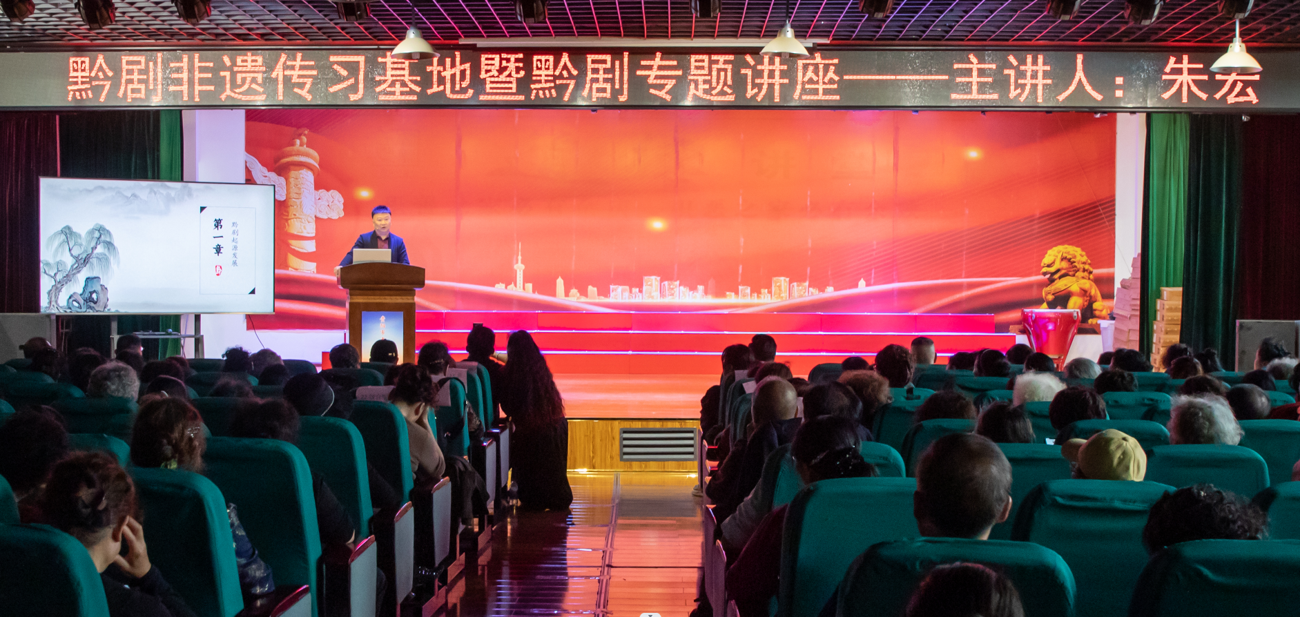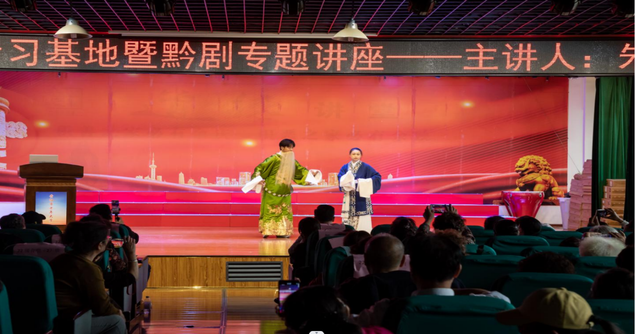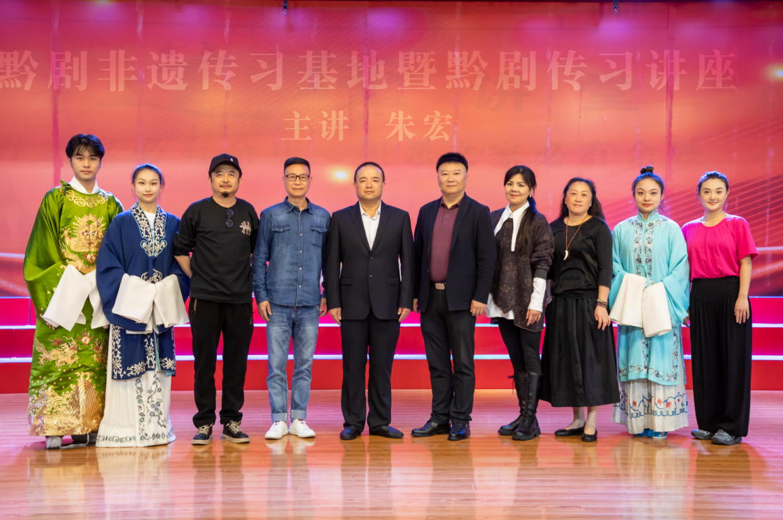 10月24日,非遺黔劇國家級傳承人、貴州省黔劇院院長朱宏到貴陽市老年大學開展黔劇藝術講座現場示范指導活動,貴州省黔劇院黨委書記張亞西、貴州省黔劇院副院長陳林參加活動。活動現場,貴州省黔劇院黨委書記張亞西、貴陽市老年大學黨支部副書記、三級調研員廖軍共同掛牌,將貴陽市老年大學設為非遺黔劇傳習基地。