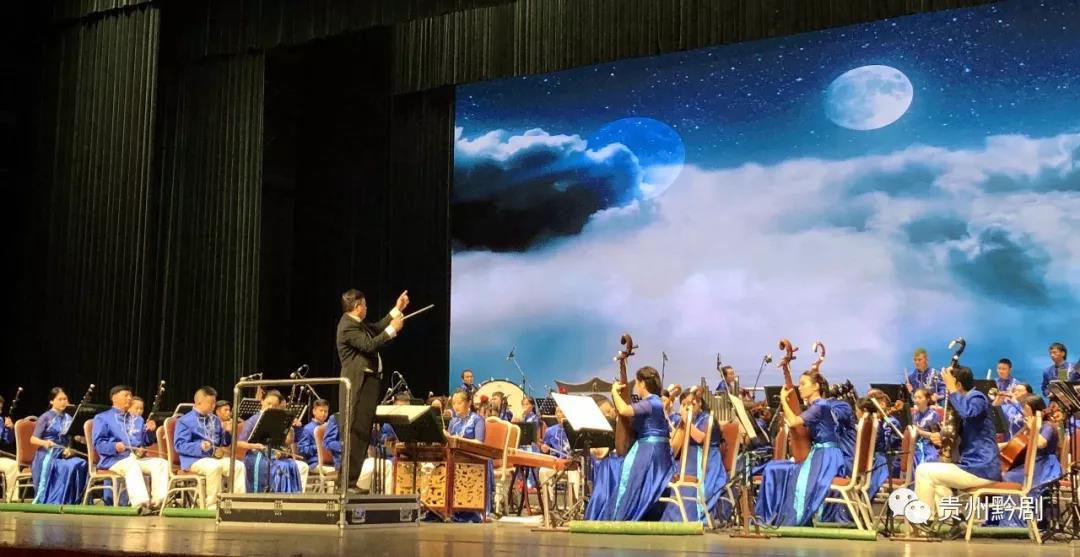大型民族音樂會《黔韻華章》由貴州省黔劇院、貴州省民族管弦樂團傾心打造,由貴州大學音樂學院音樂系主任游永生指揮。本場音樂會將貴州各民族地區的民間音樂和戲曲作為基本創作素材,以時間和空間為主線,用民族音樂語言和表述方式,以優美的黔地之韻來展現多姿多彩的美麗貴州?!暗崖曈朴?、竹筒聲聲……”一首《序?夜郎》拉開了音樂會的帷幕,整臺演出把貴州各處獨特的歷史人文風貌、自然風光通過樂器串聯起來,悠悠黔韻,錦繡華章,壯哉黔韻,曠舞而筼,呈現了多彩貴州“十里不同風、百里不同俗”的音樂文化版圖。每一曲畢,都贏得在場觀眾持續而熱烈的掌聲。